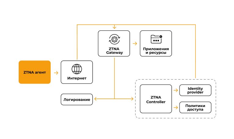 +5.  **Безопасное подключение к ресурсам** — Если доступ разрешён, ZTNA Gateway устанавливает защищённое соединение с нужными ресурсами.