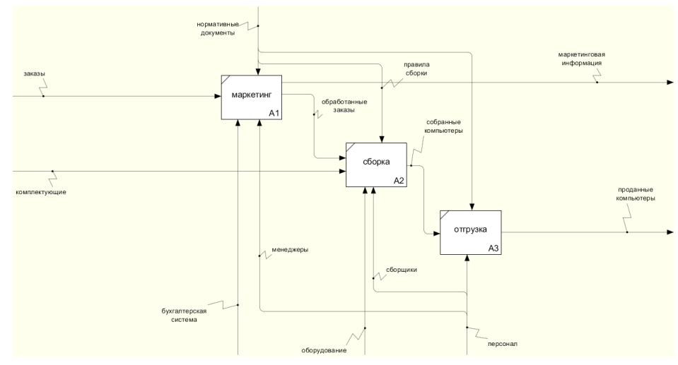 Пример диаграммы IDEF0 верхнего уровня.